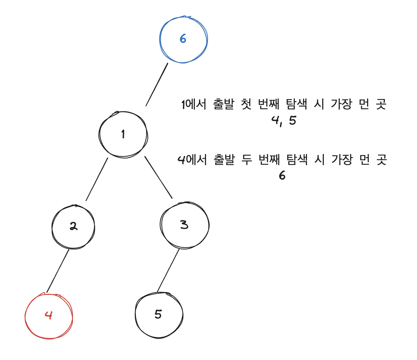 # 트리이기 때문에 사이클 x -> 각 노드에 방문할 때 길이가 유일한 경로
